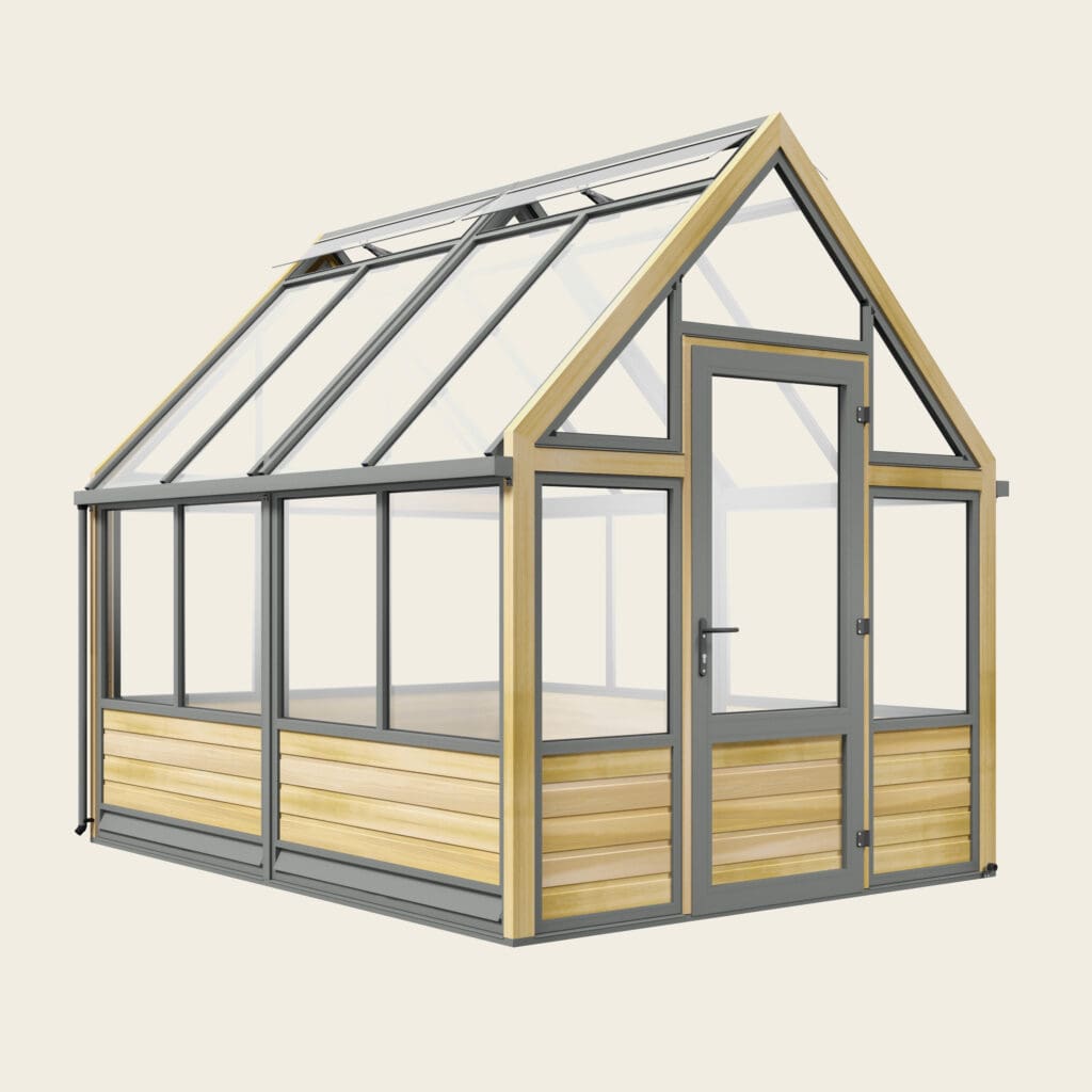 in a choice of finishOur best-selling greenhouse features attractive partial boarding, discreetly concealing any mess that might accumulate beneath the staging – delivering the charm of a dwarf wall greenhouse without the added cost of construction.